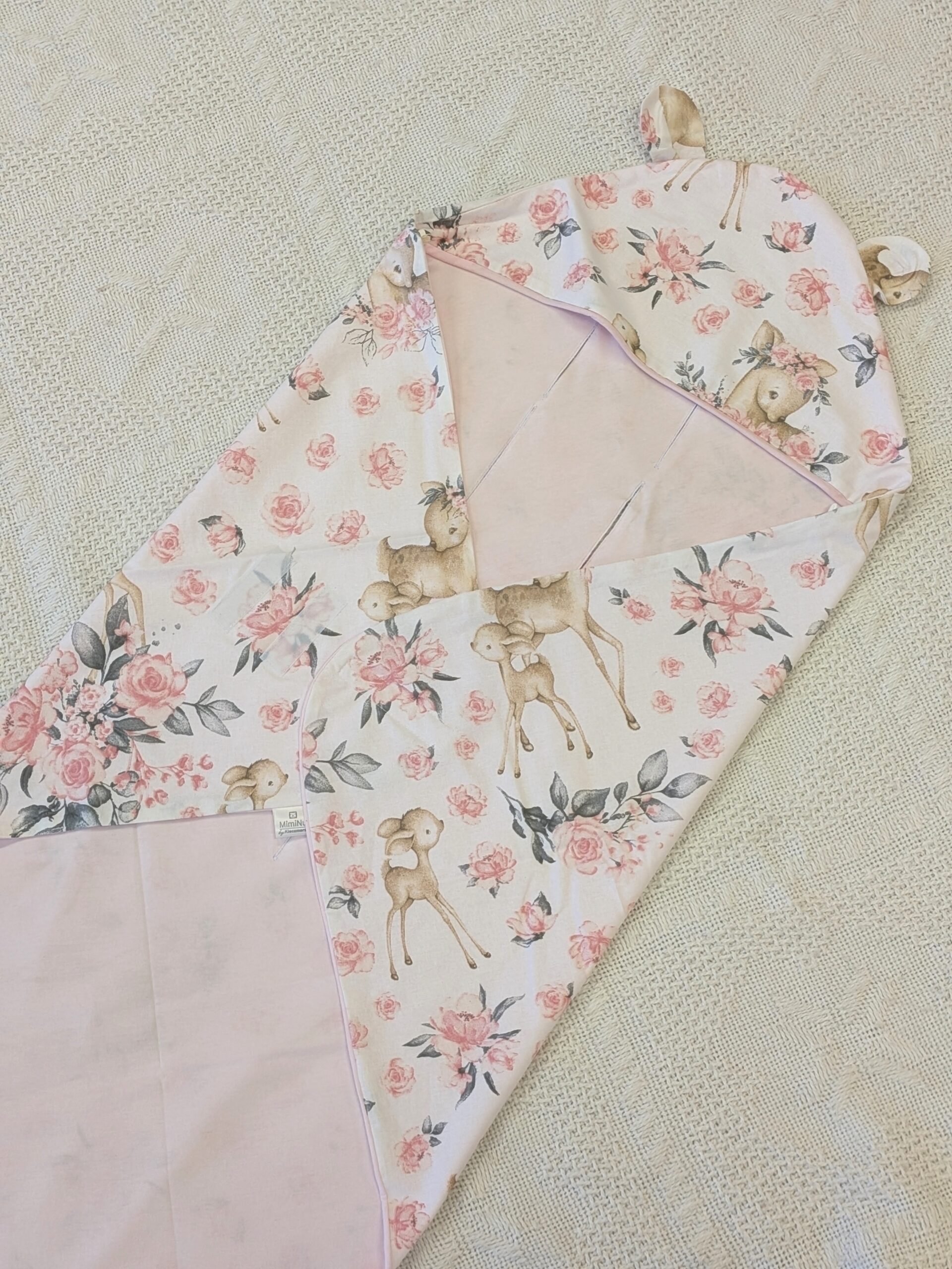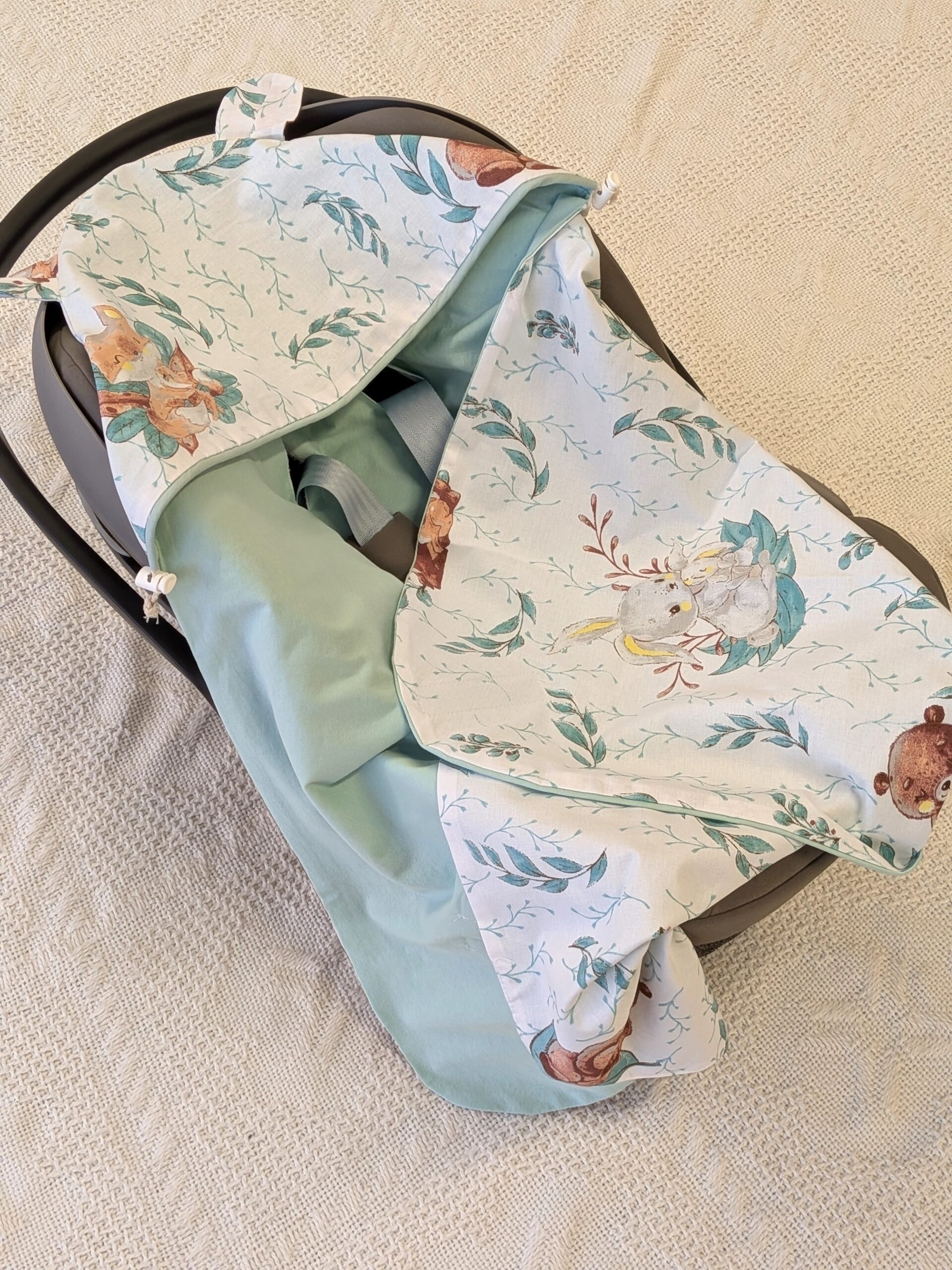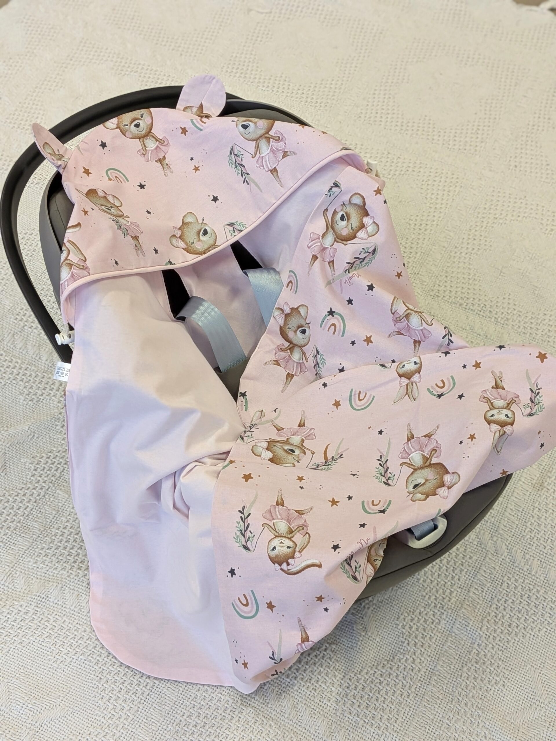 Kangakoostis: minky fliisist välisriie, 100% puuvillane mustriga sisevooder.