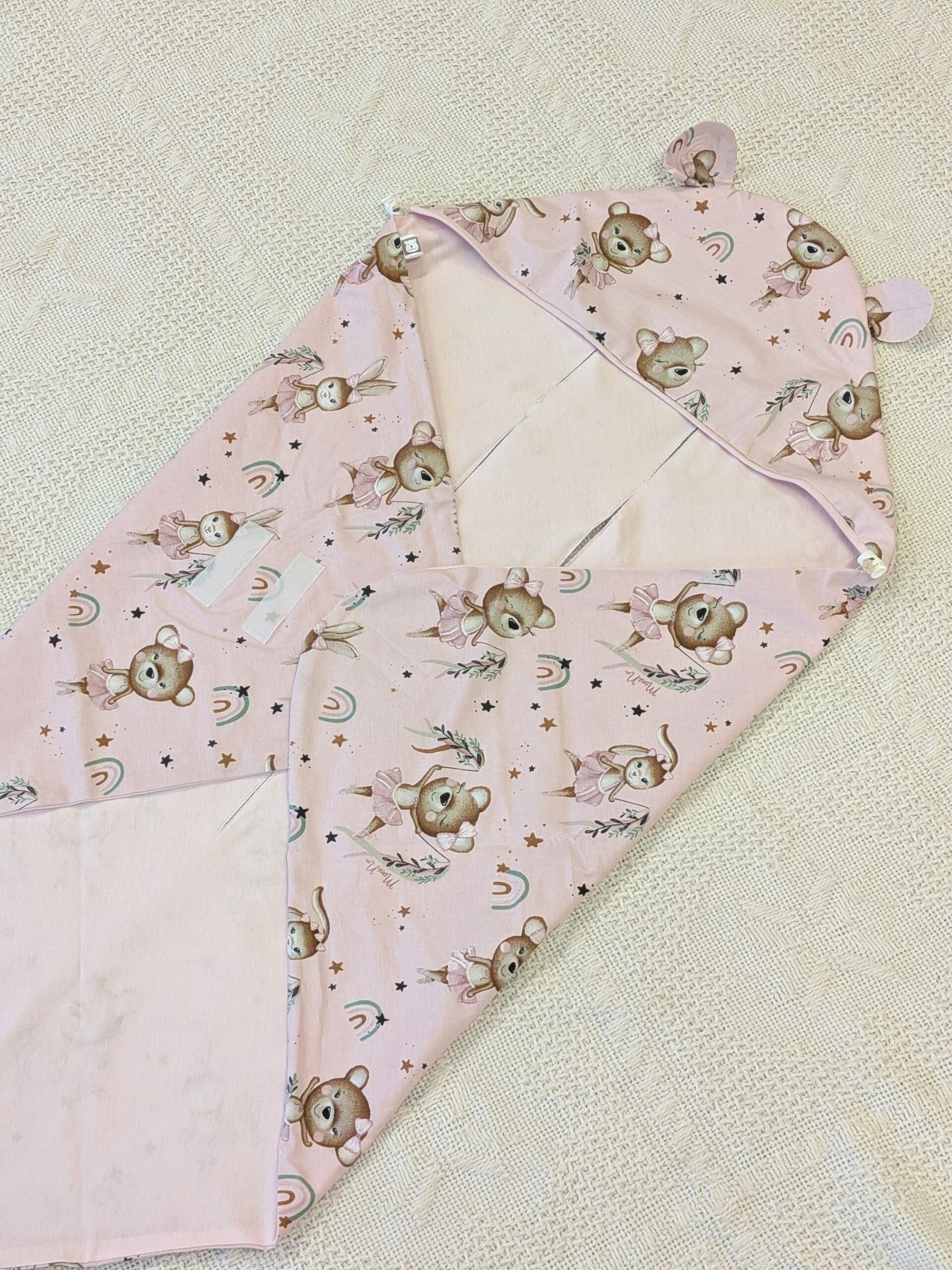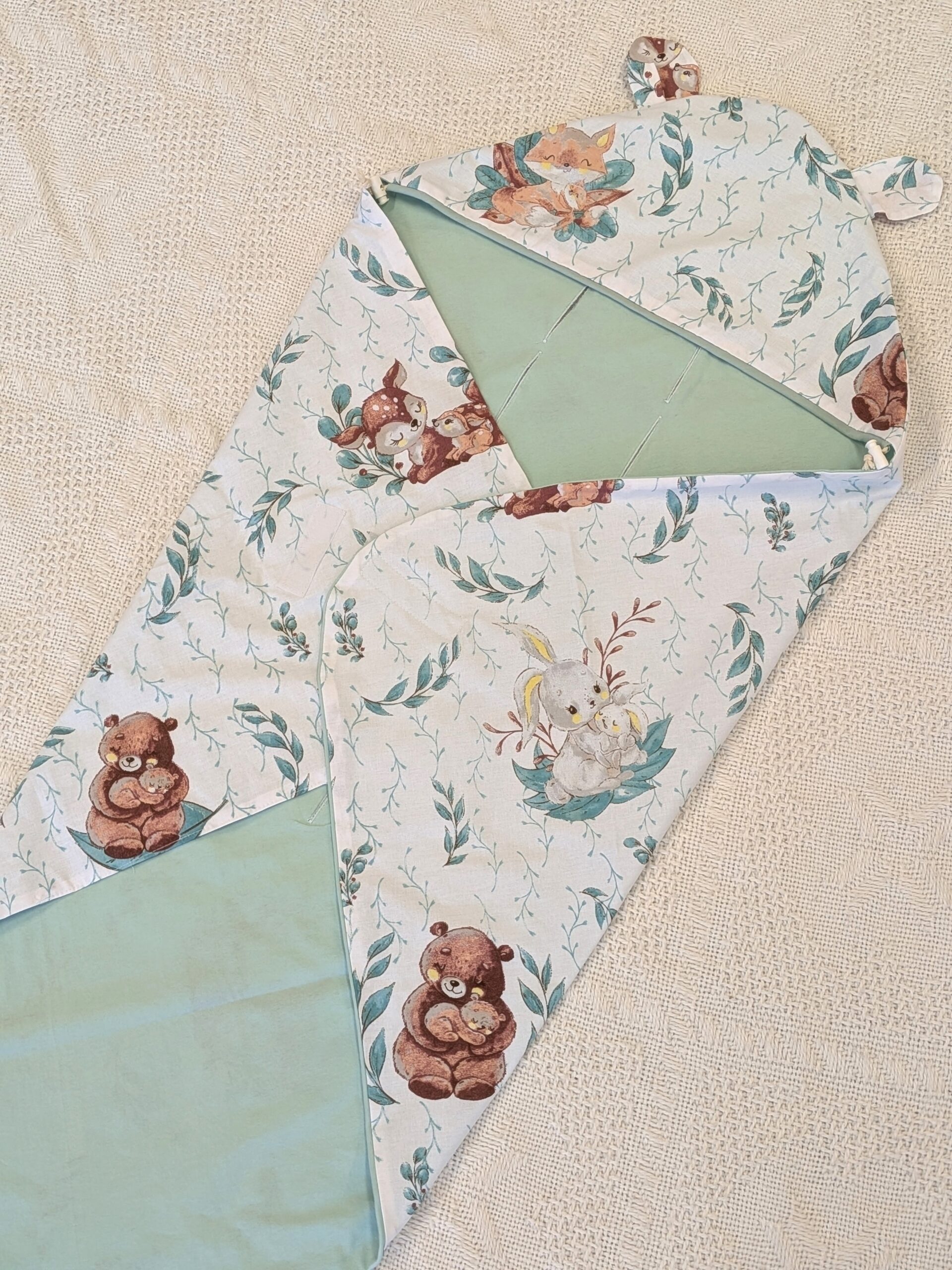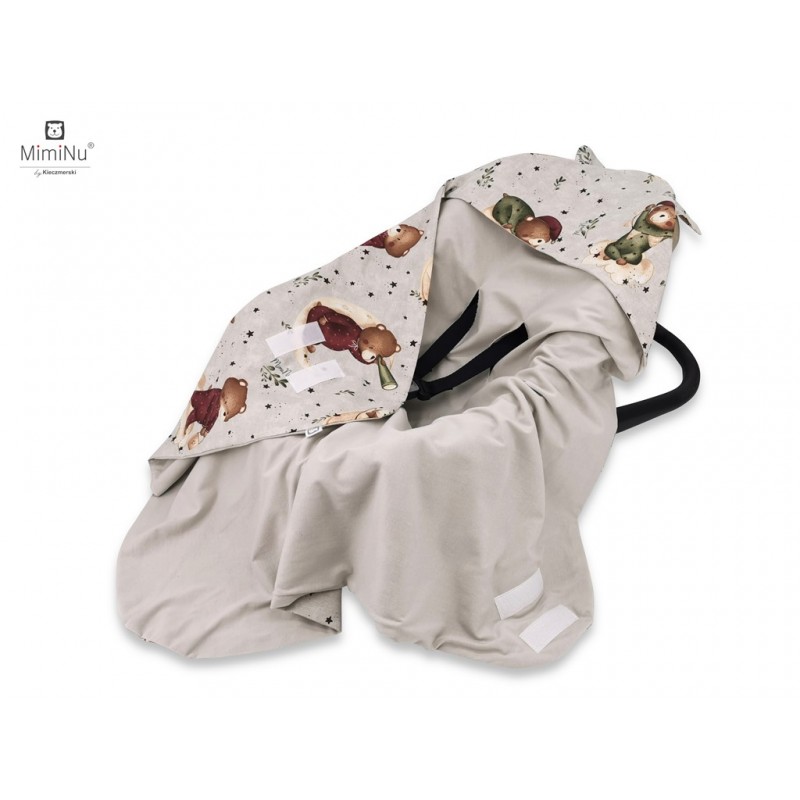 Kangakoostis: minky fliisist välisriie, 100% puuvillane mustriga sisevooder.
