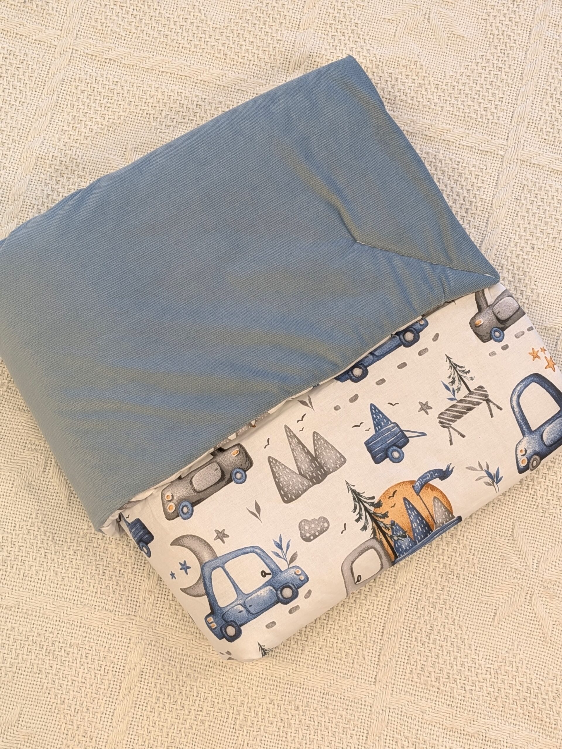 Mustriga pool on 100% puuvillane, ühevärviline pool on velvetist.