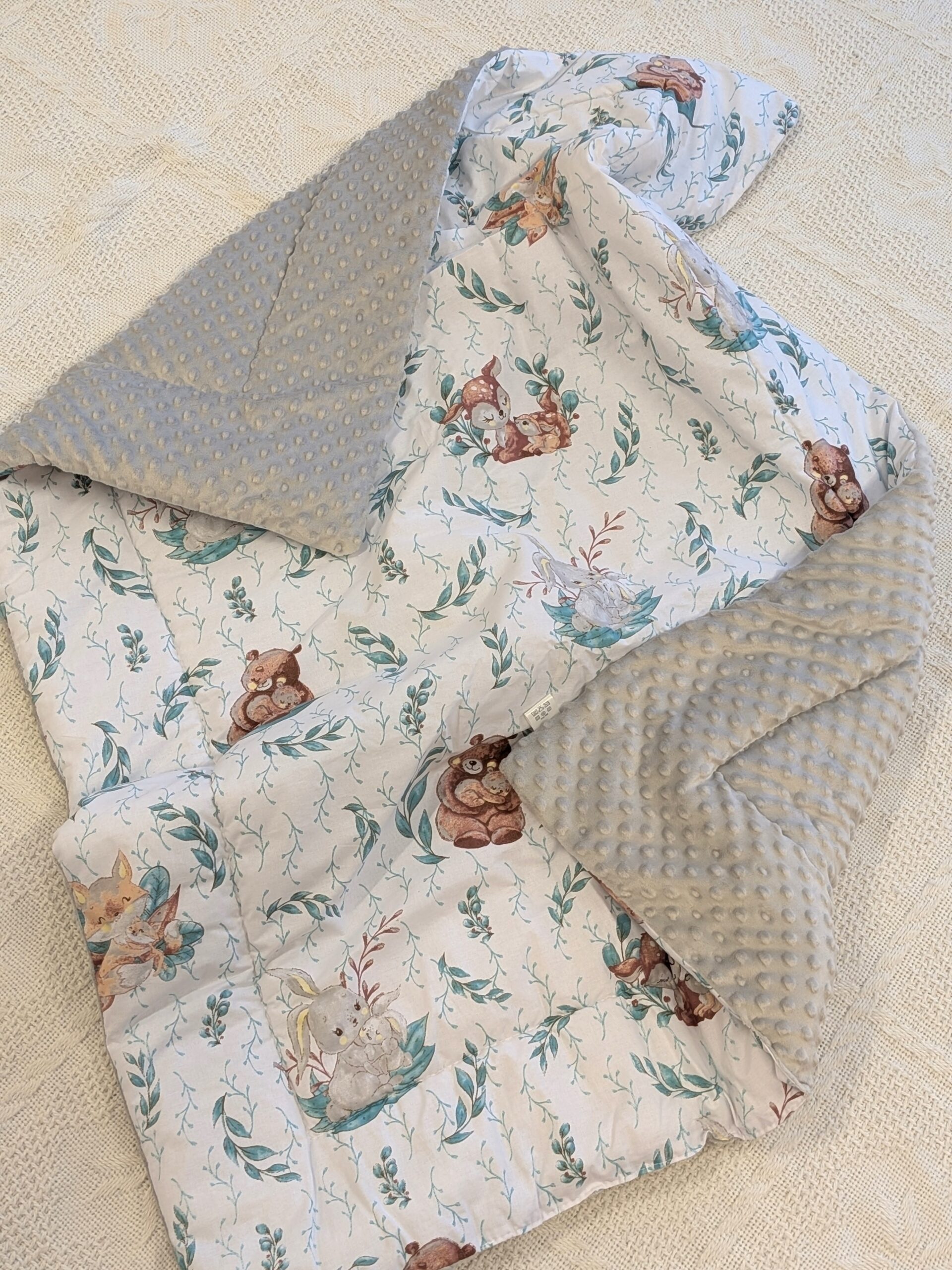Mustriga pool on 100% puuvillane, ühevärviline pool on mummulisest minky fliisist.