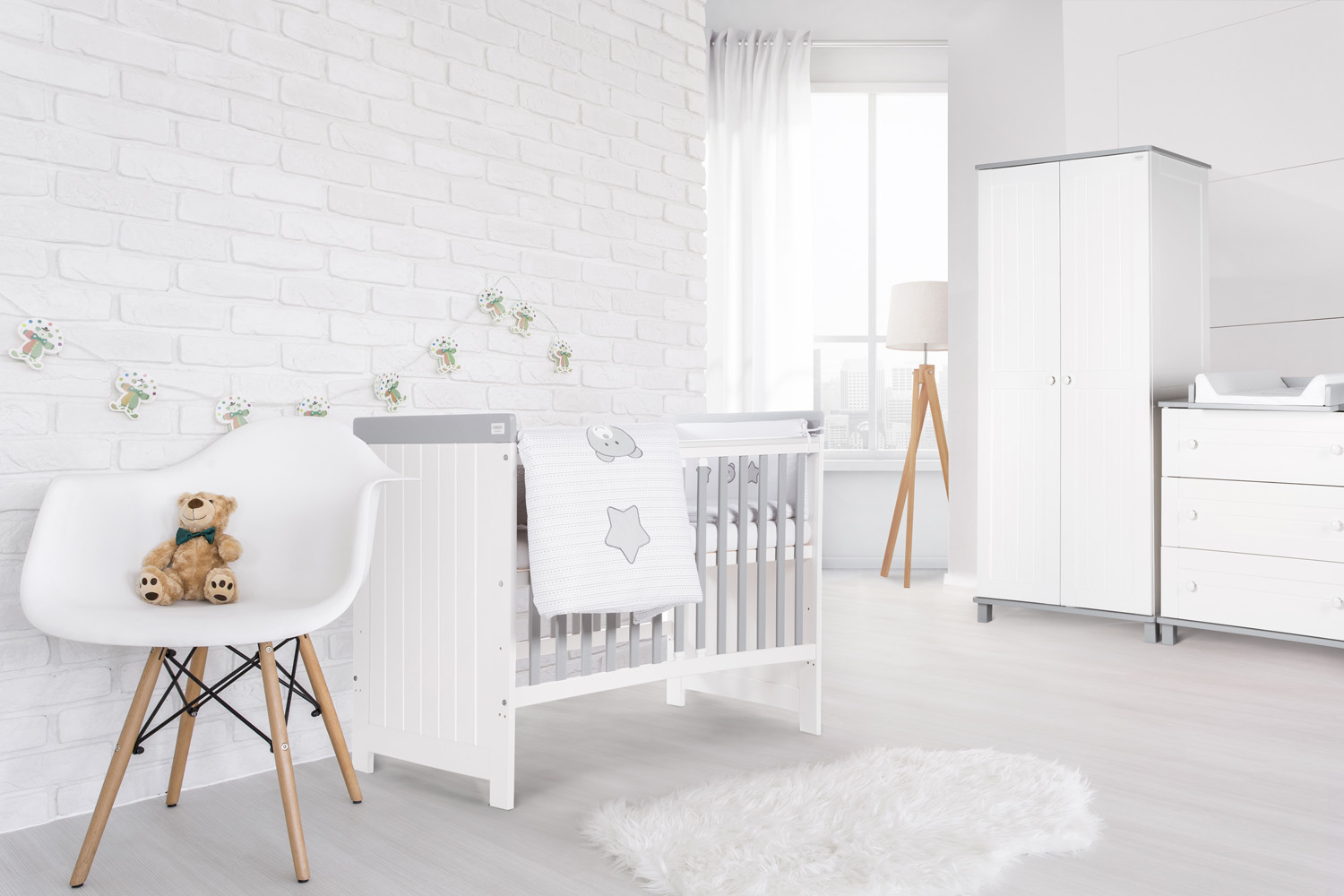 Üks pikem võrekülg võimalik täiesti eemaldada, et beebivoodi enda suure voodi kõrvale panna.
