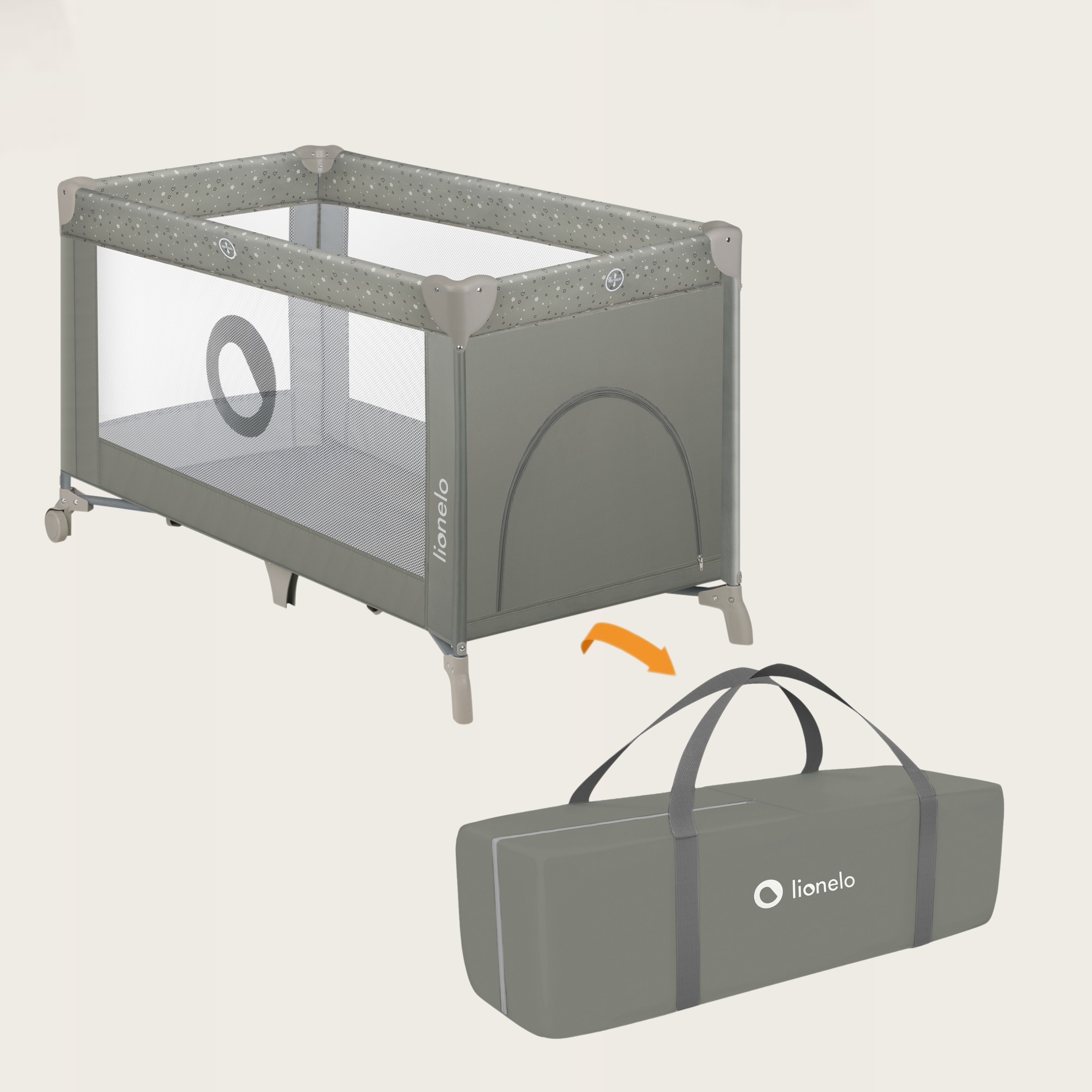 Komplektis: reisivoodi, sangadega kandekott ja kokkuvolditav reisivoodi madrats.